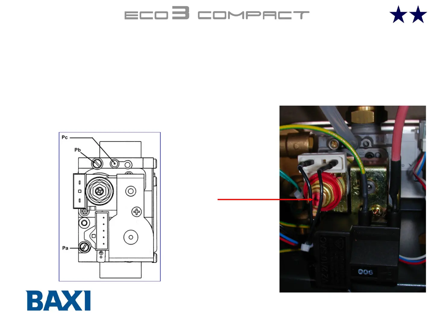 • Disconnect a modulator wire and adjust the red screw to reach the pressure value as specified in