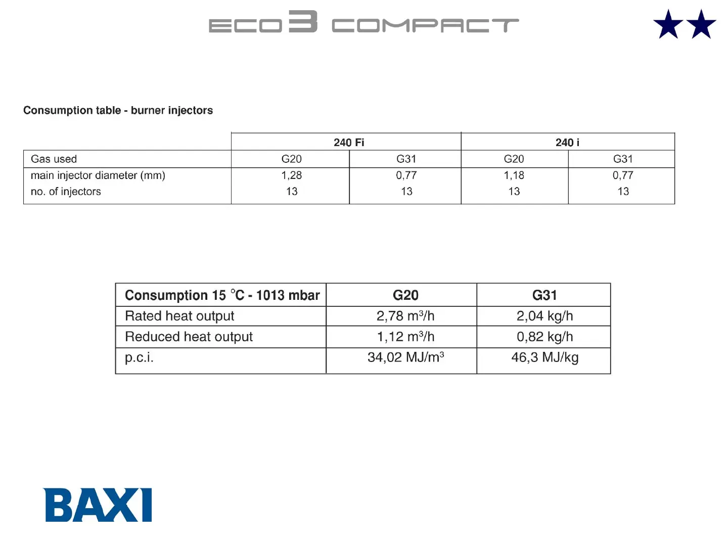 Baxi ECO3 COMPACT - Consumption Table