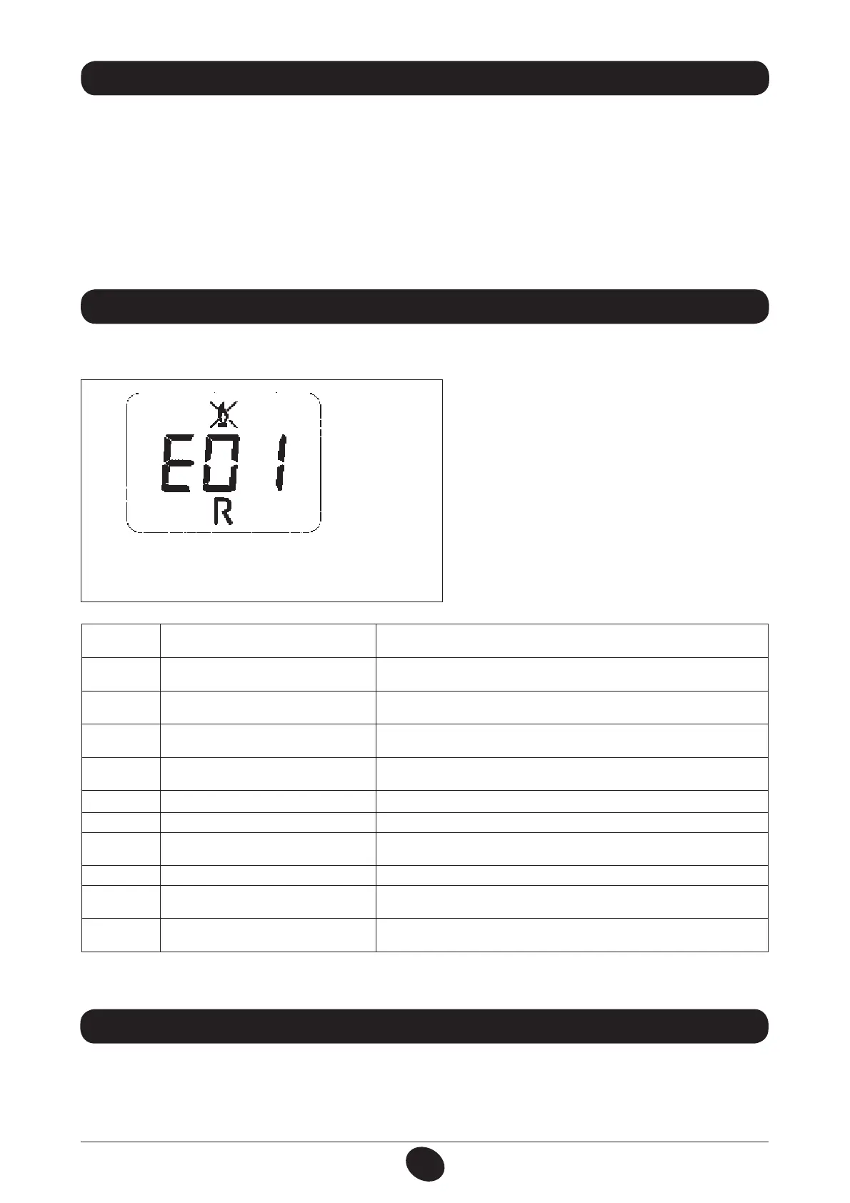 Faults are shown on the display with an error code (e.g.: E 01):