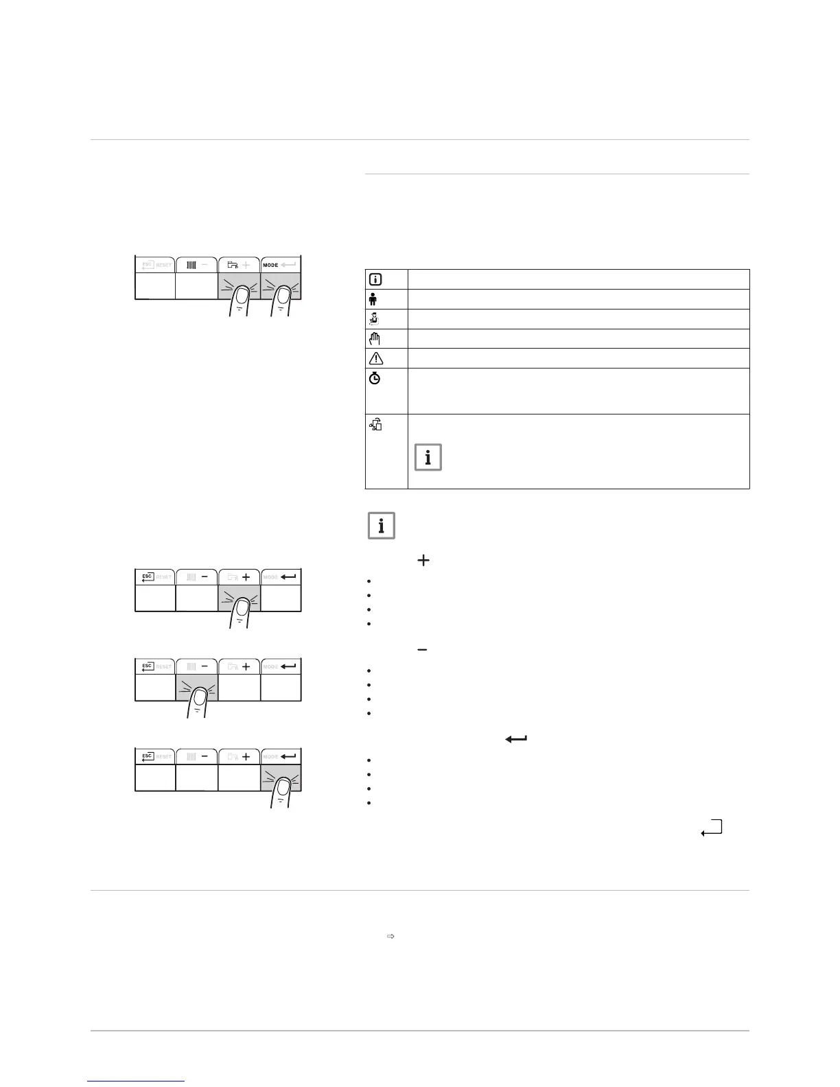 Press the key to: