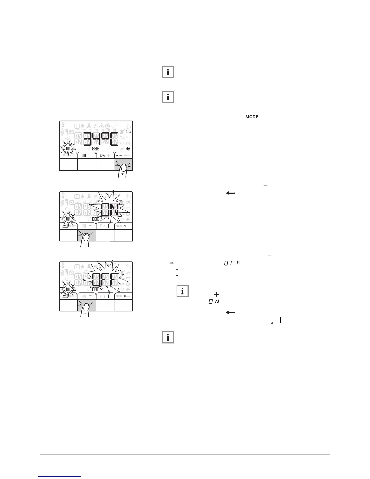 4. Select the heating shut-down pressing the key.