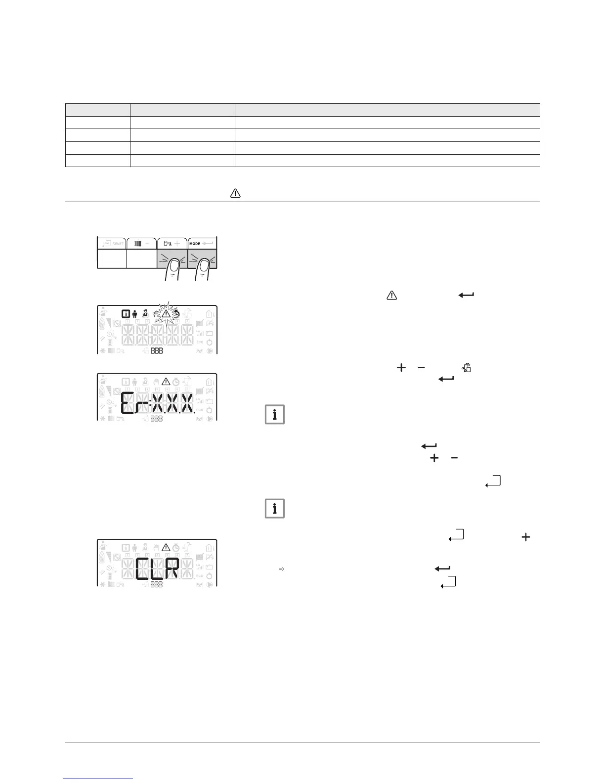 Clear the error memory by pressing the key.