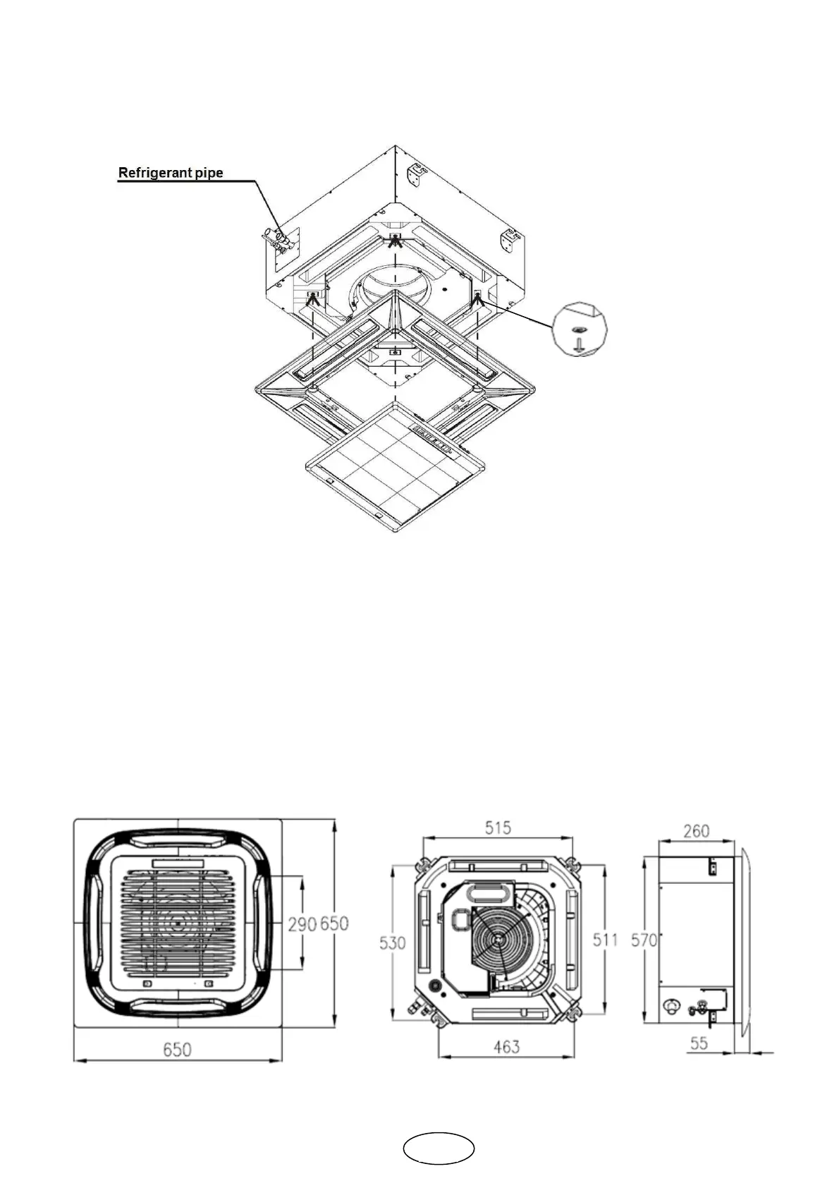 position of the refrigerant pipe entry into the indoor unit.