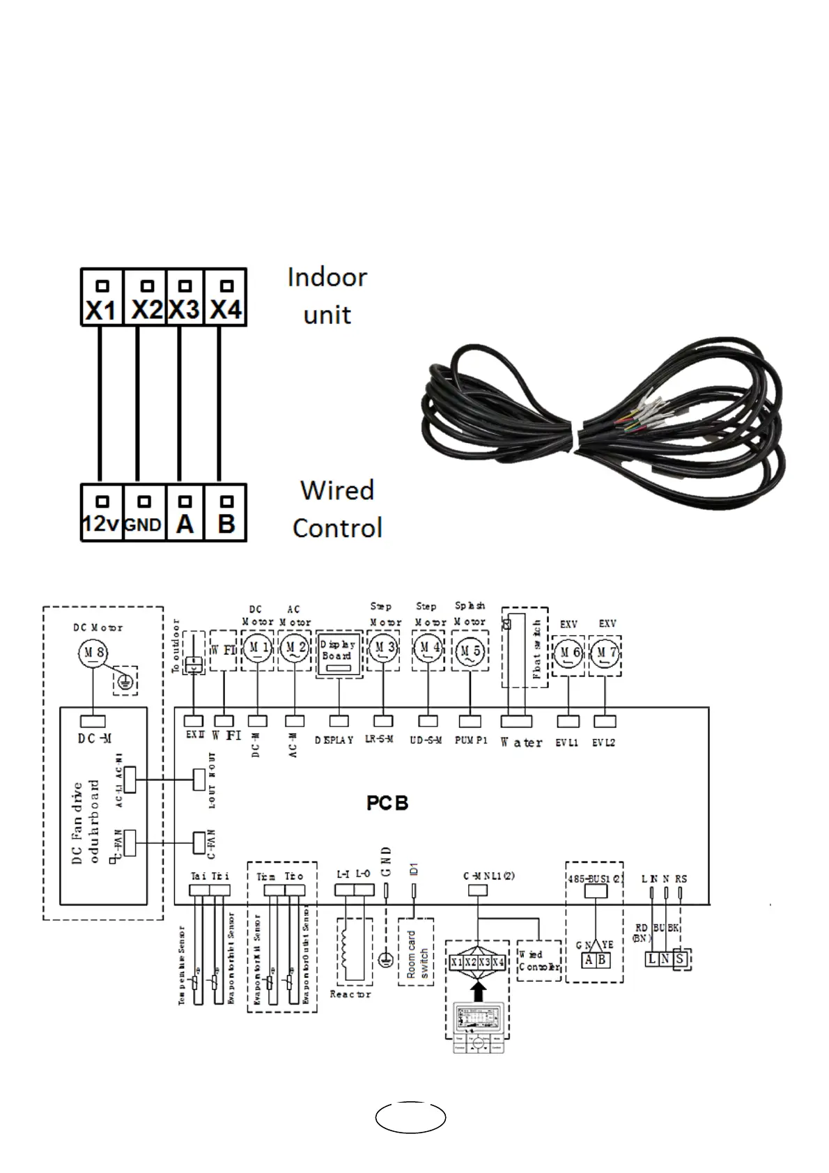Connect the wired control, using the supplied cable, to X1, X2, X3, X4 terminal