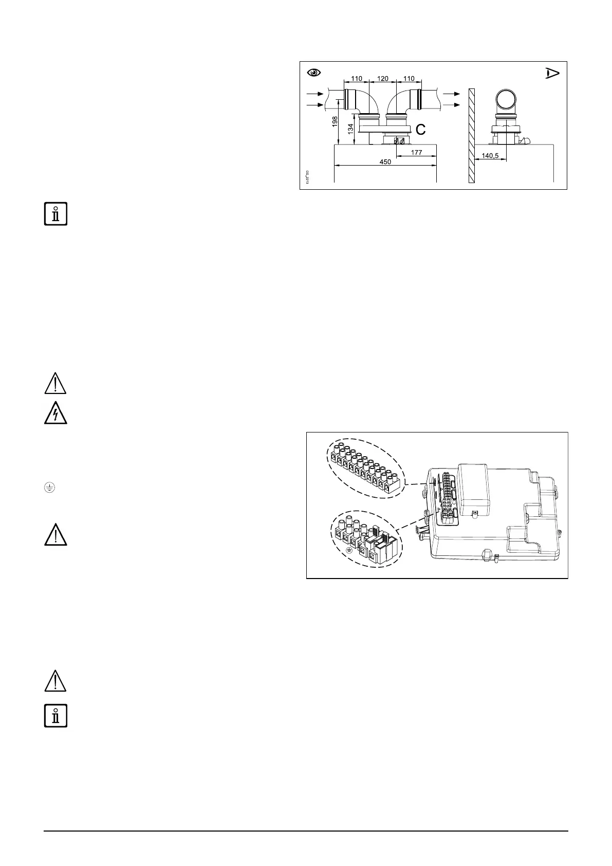 For special installations of the fumes inlet/outlet ducts, the