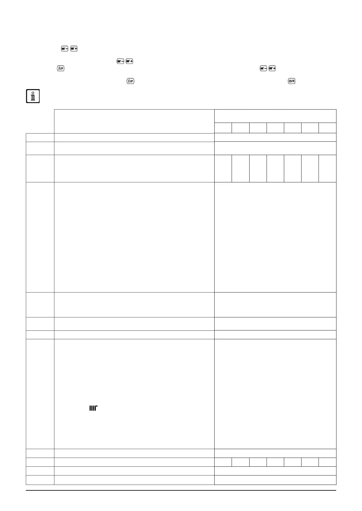 Die Parameterliste mit den Tasten