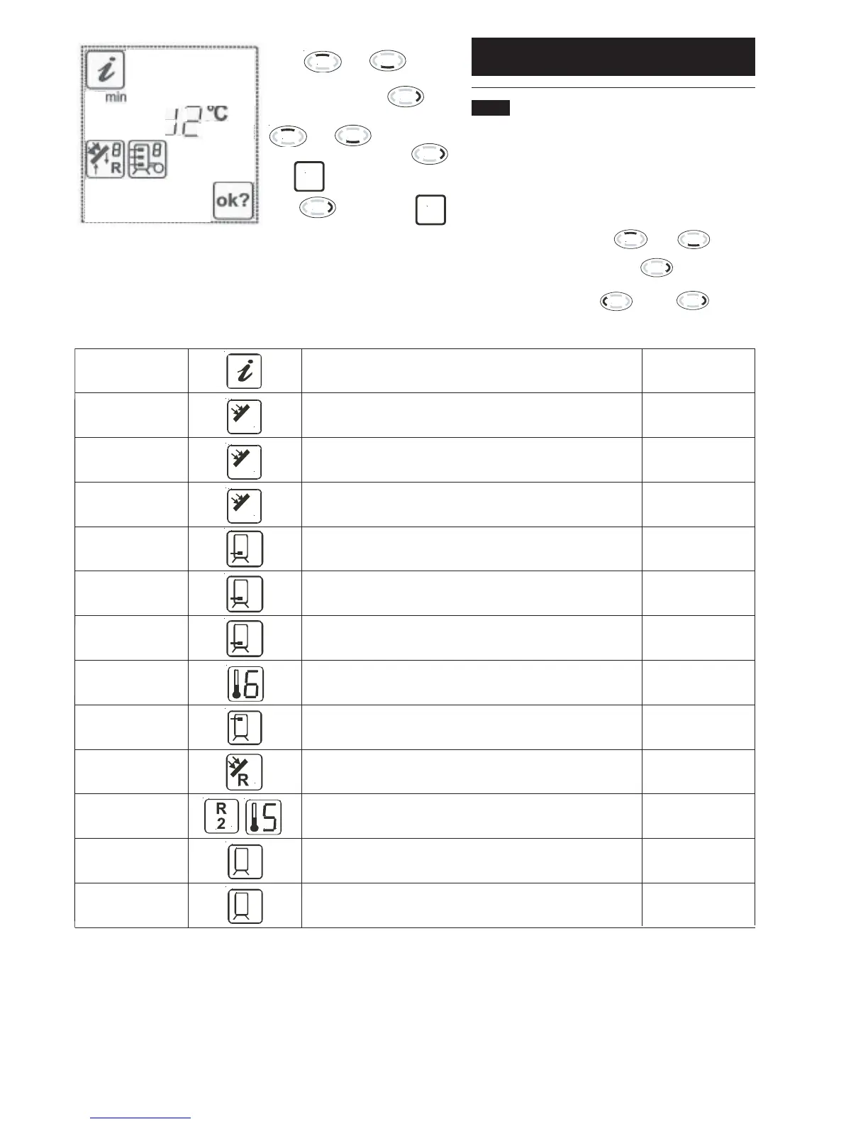 55ºC Indication of current temperature storage tank thermostat no