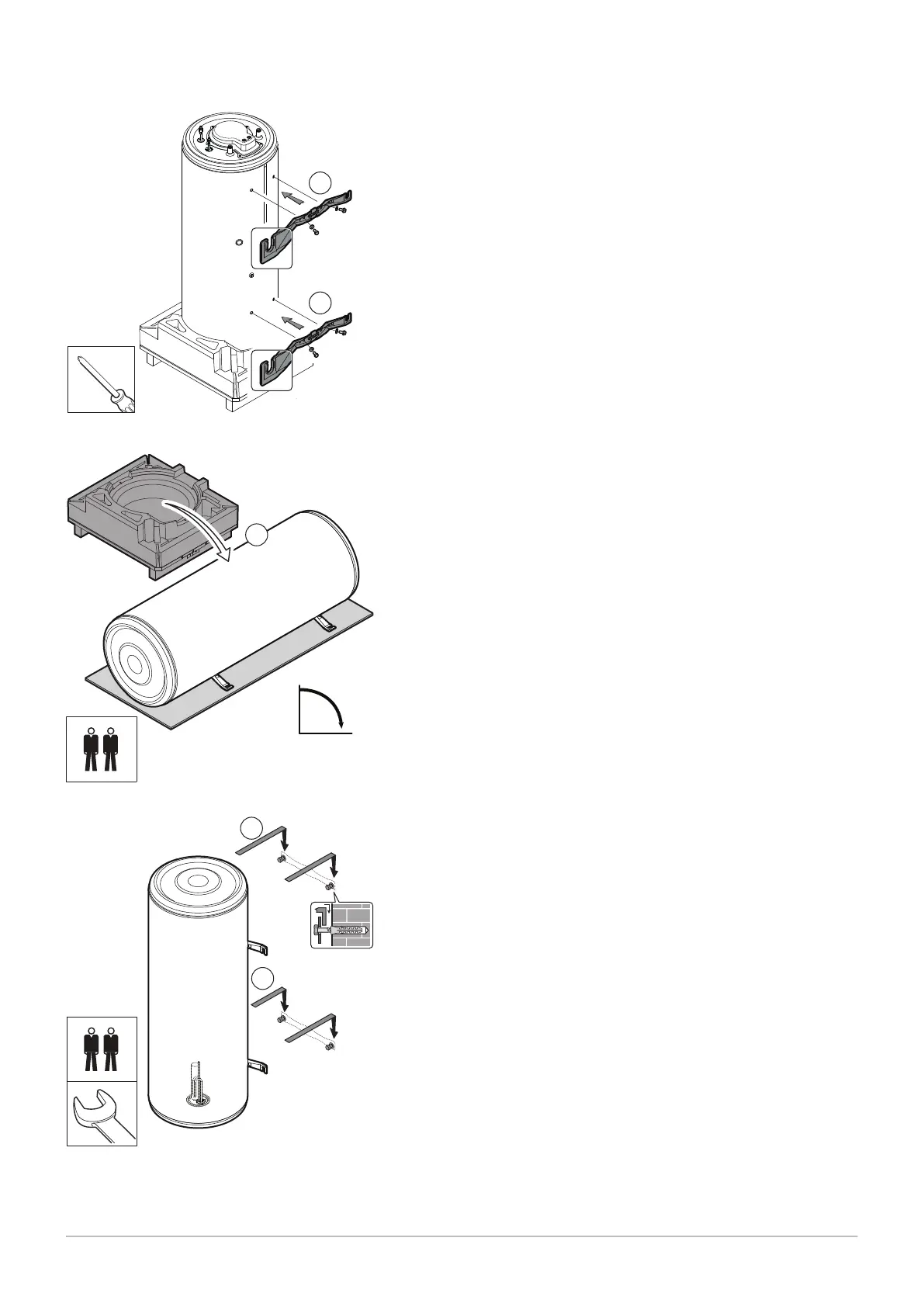 6. Attach the domestic hot water tank by inserting the brackets onto the