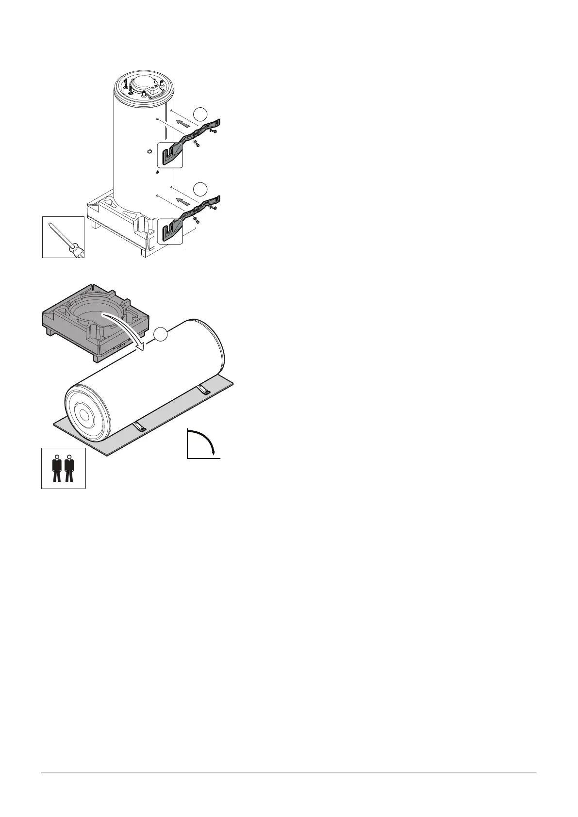 5. Tilt the domestic hot water tank onto its brackets.