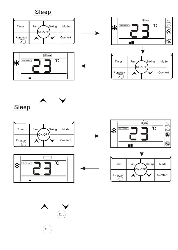 2. Die Taste „ “ oder „ “ drücken, um zur ECO-Funktion zu wechseln, in diesem