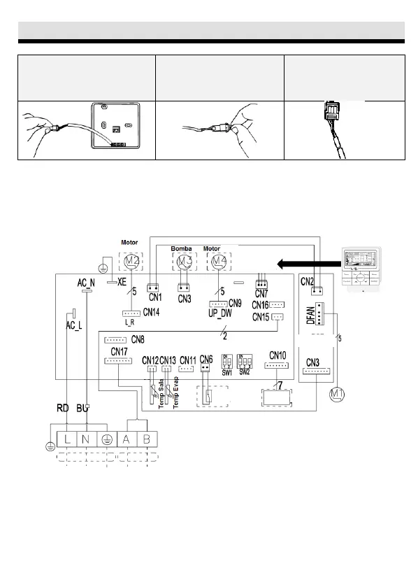 O conector branco do controlo deverá ser ligado ao conector “CN7” da placa de