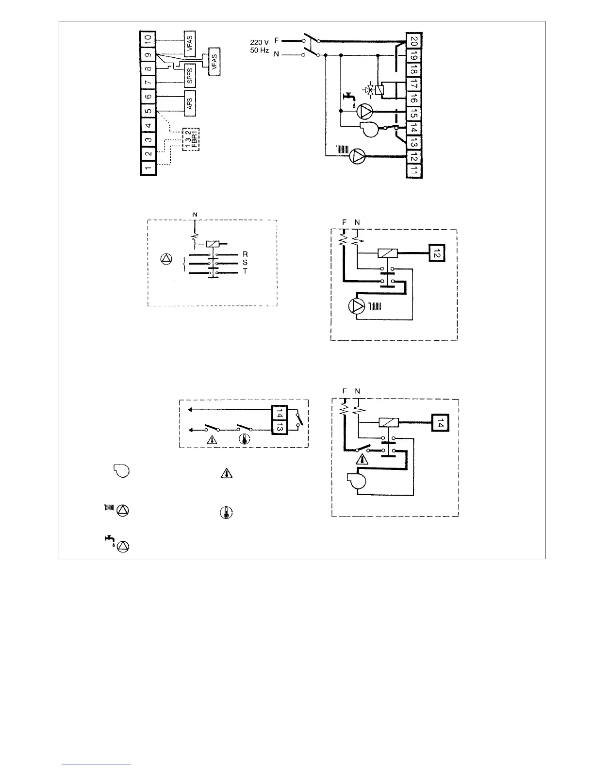 Bornes circuit auxiliaire thermostats brûleur