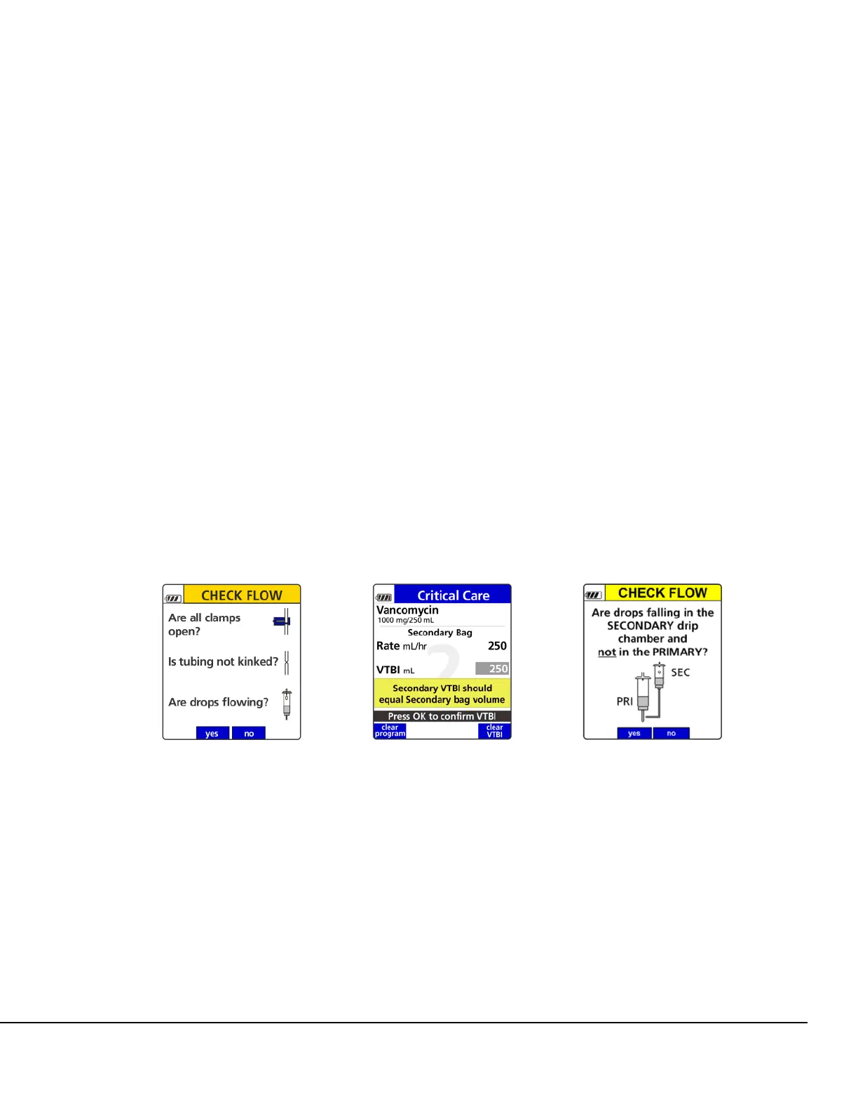 During Secondary setup, a pop-up displays to verify that the Secondary VTBI (Volume To Be