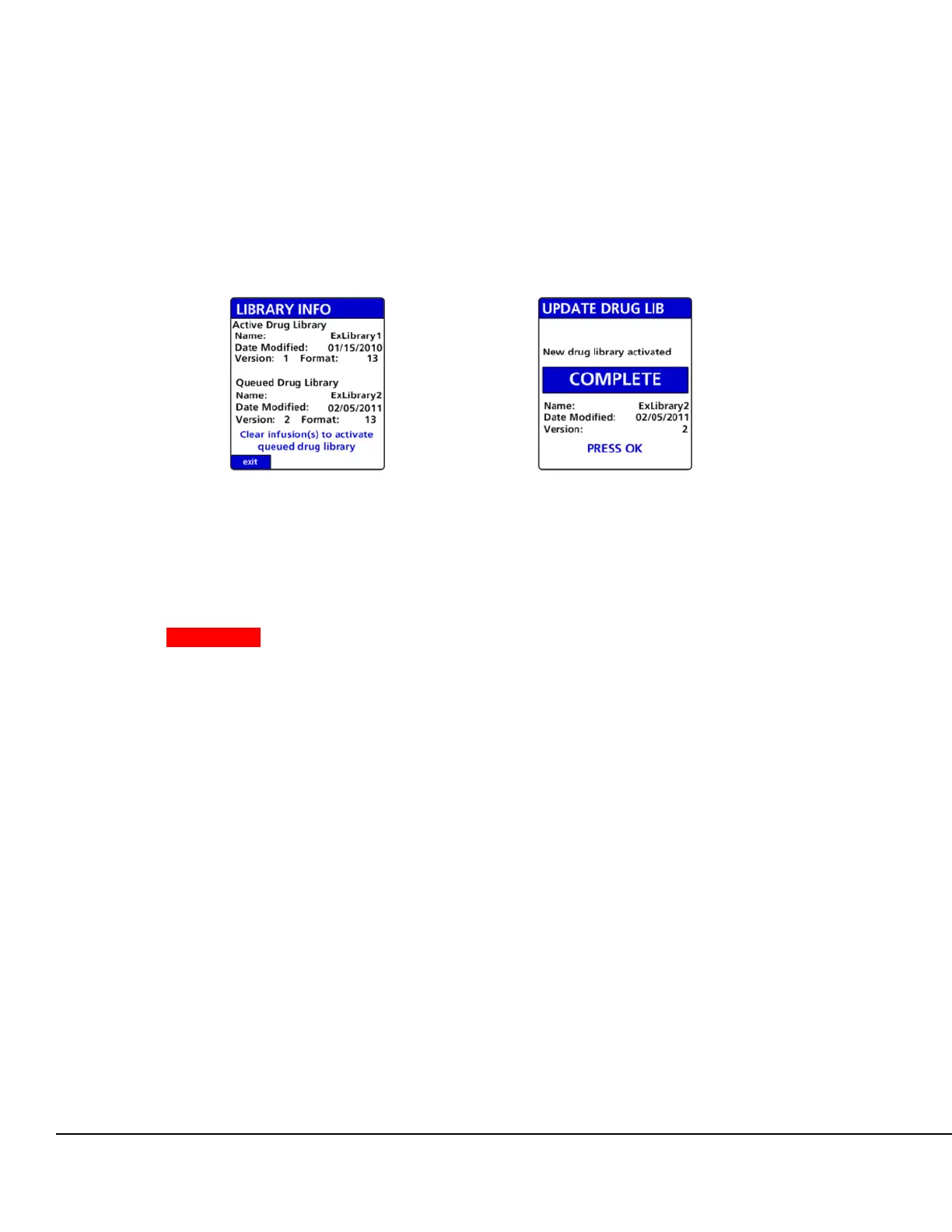NOTE: Once a Drug Library is queued, the user cannot prevent the queued library from