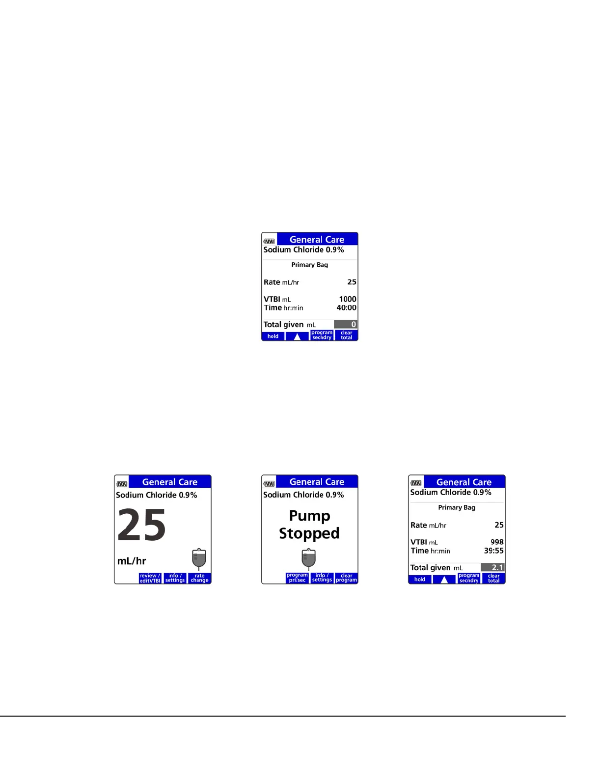 6. On the Pump Stopped screen, press the program pri/sec soft key. See Figure 43. The Setup