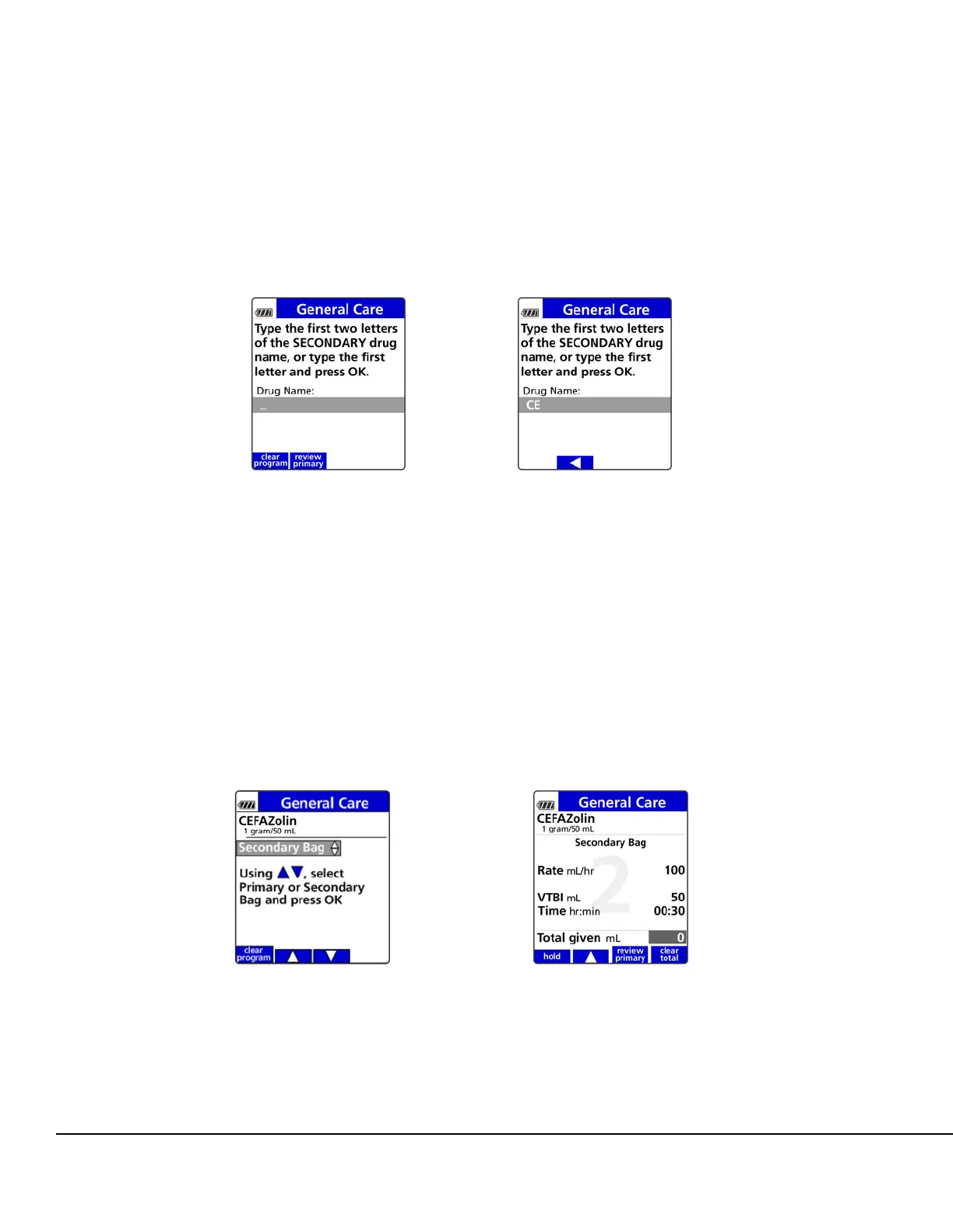 9. Press OK to select the secondary bag or press the arrow soft keys to change to the primary
