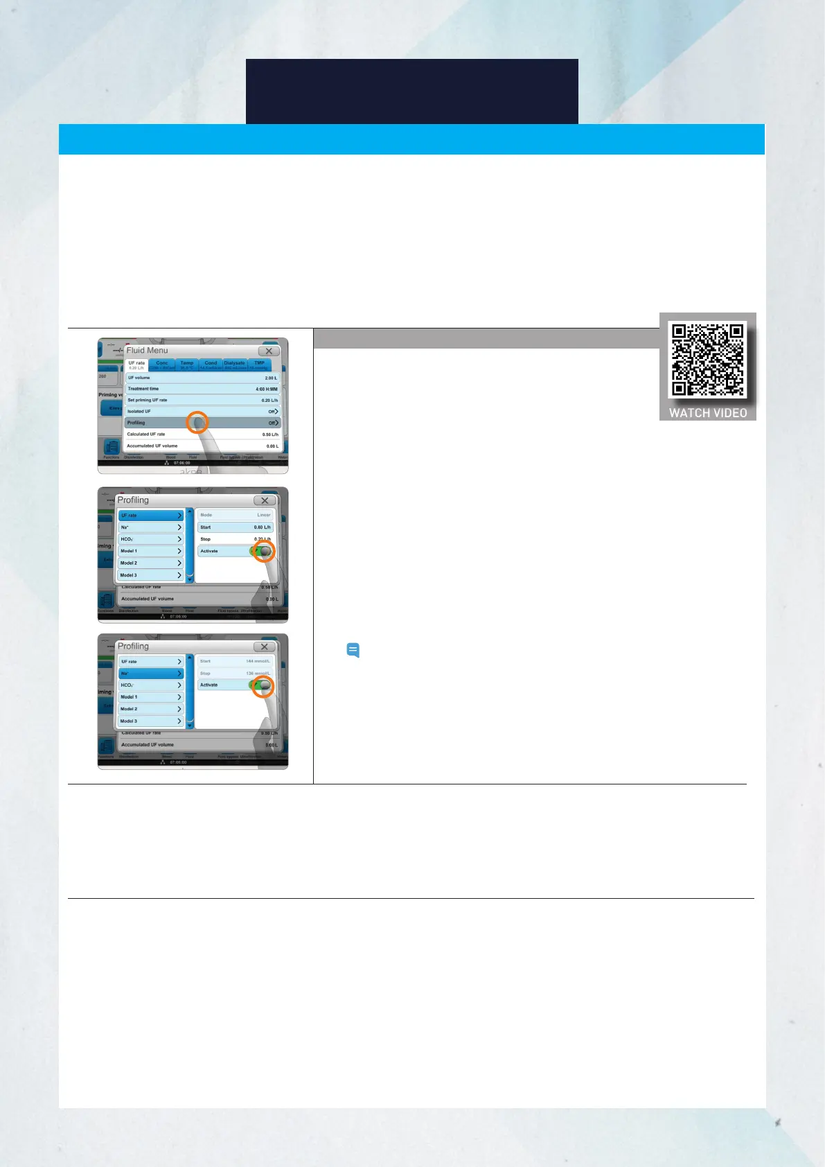 You can define the treatment parameter pattern through profiling. Ultrafiltration rate (UF rate), sodium (Na