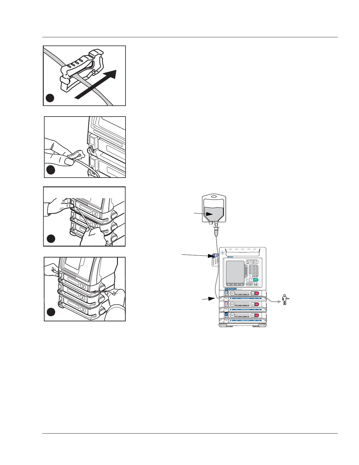 clamp, then loads the administration set into the pumping
