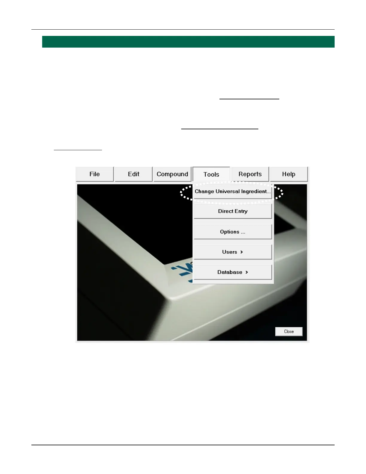 If you are prompted to change the volume of the UI during the compounding process, refer to