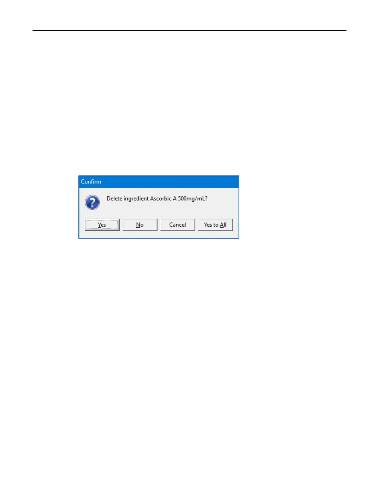 • Yes to All to delete all ingredients selected in the Formulary Editor window