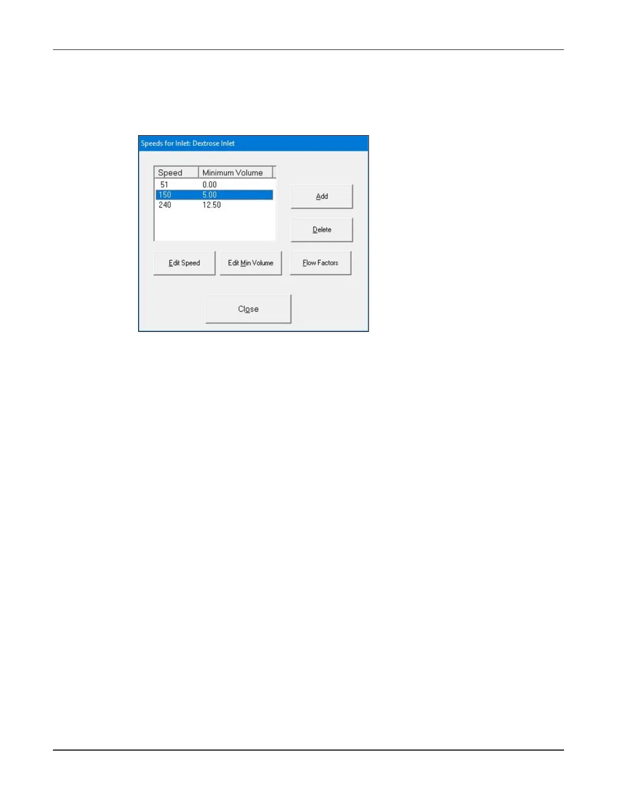 2. At the Speeds for Inlet <name> window, follow the instructions of Baxter Technical