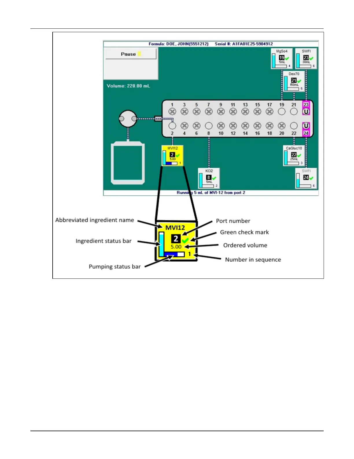 • A vertical bar showing how much of the ingredient remains in the container; during the