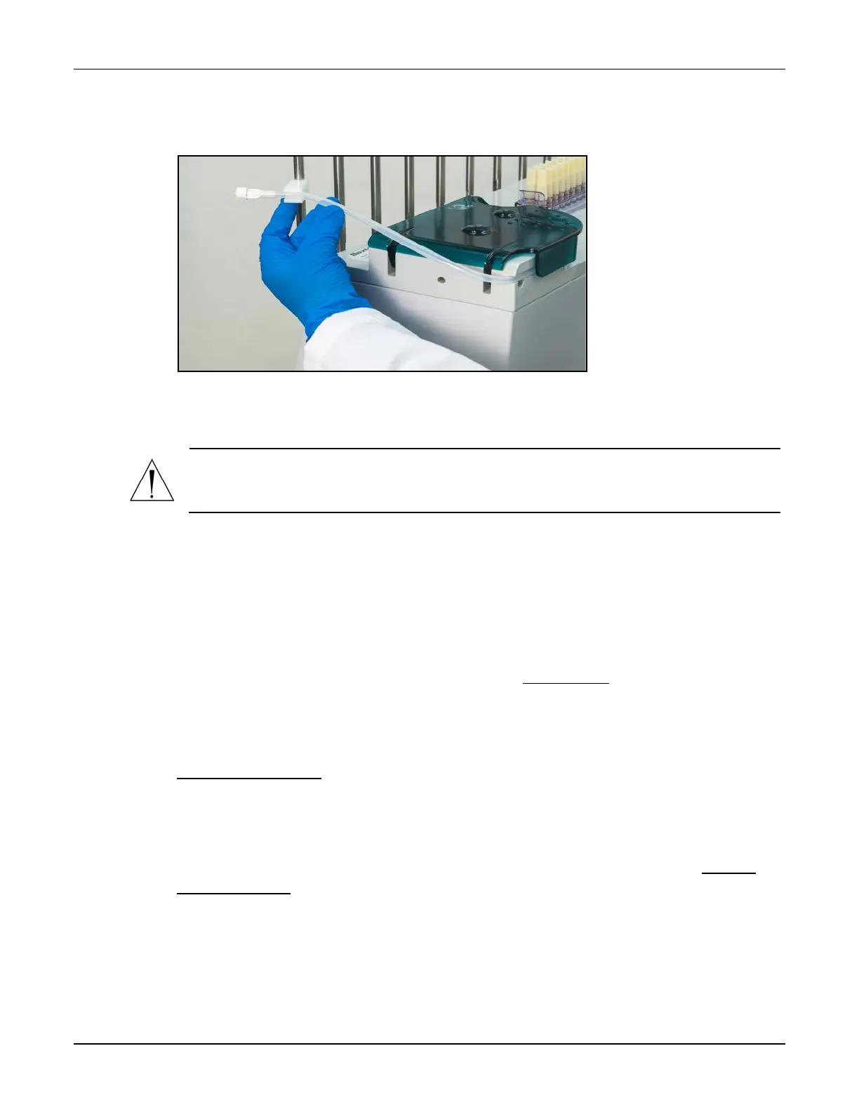 9. Connect the end of the outlet tube to the tube holder on the vial rack.