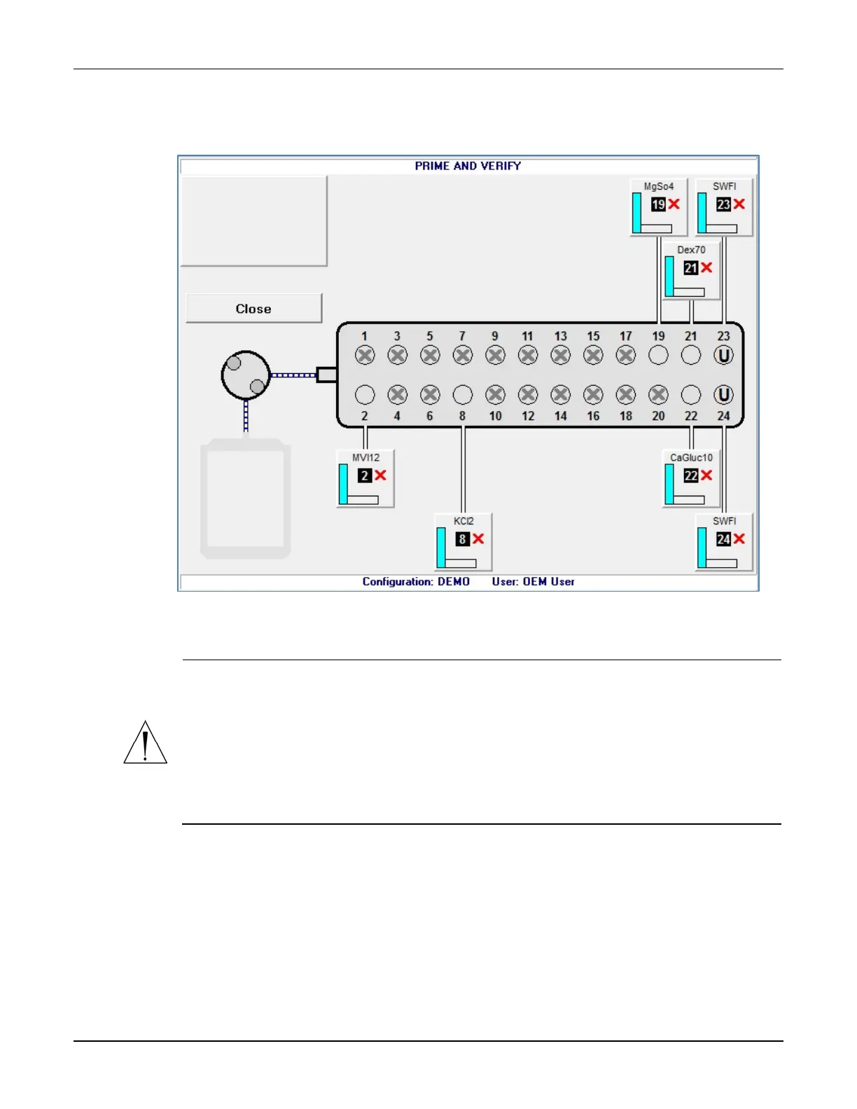 When an X appears on the ingredient button, it indicates that priming and verification