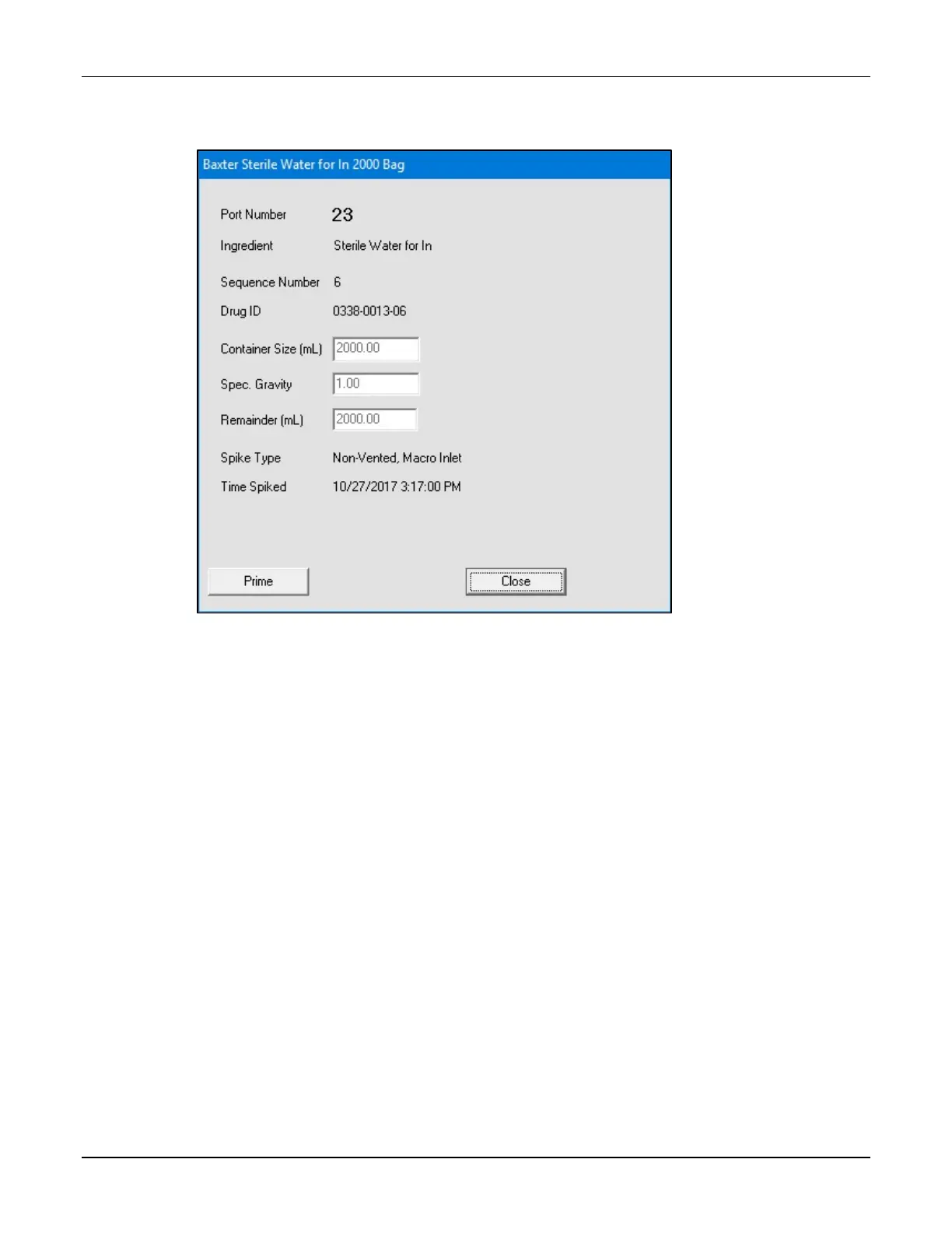 Ingredient detail window before priming