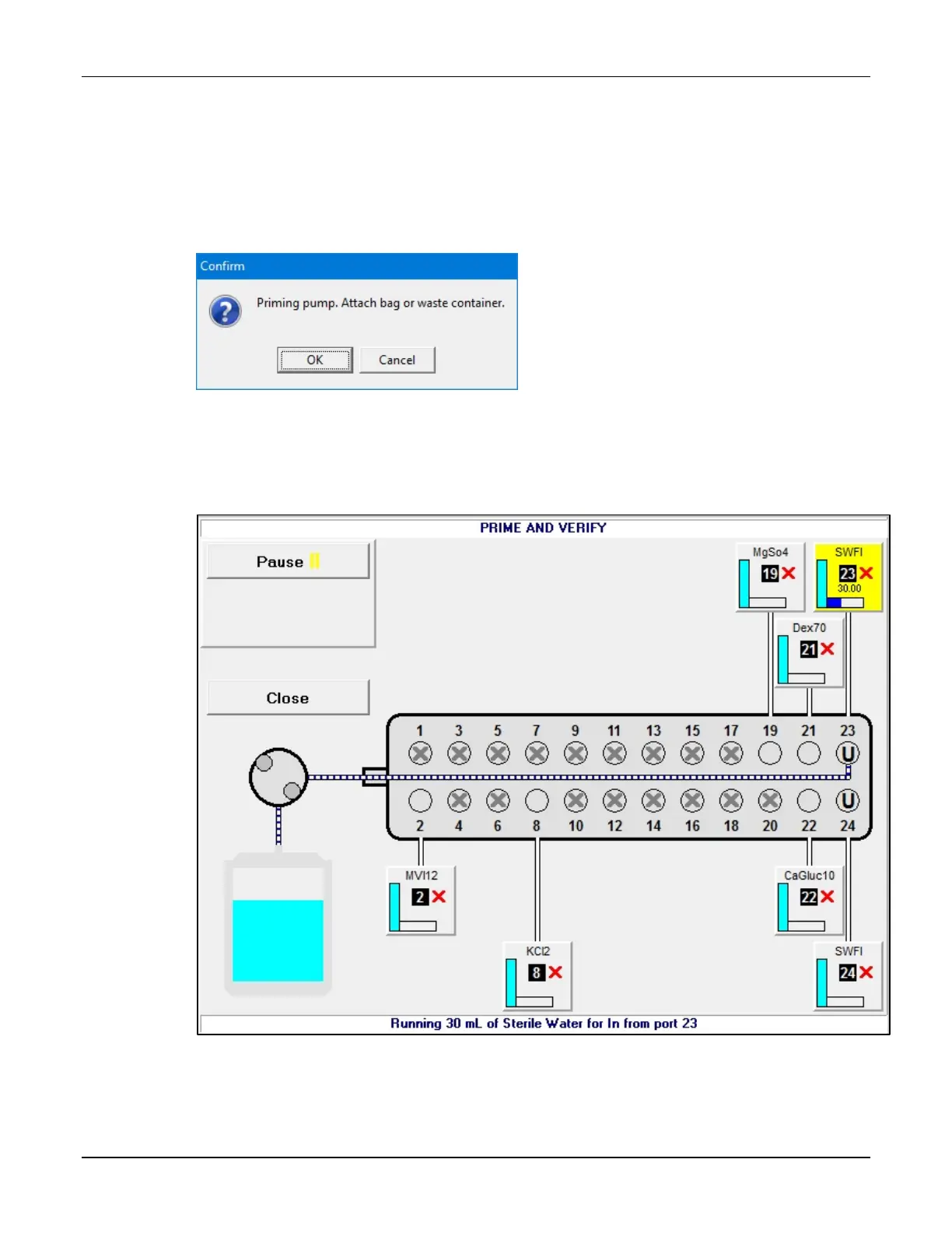 PRIME AND VERIFY screen, priming in progress