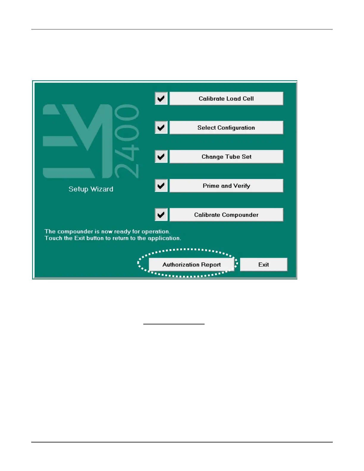 When the setup steps are finished, the Authorization Report button becomes active at the