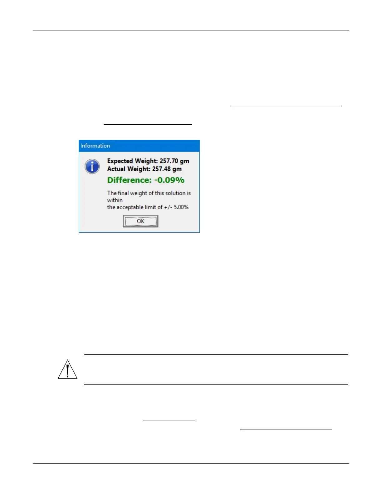NOTE: If the difference is not acceptable, refer to Issues with the Weight and Load Cell