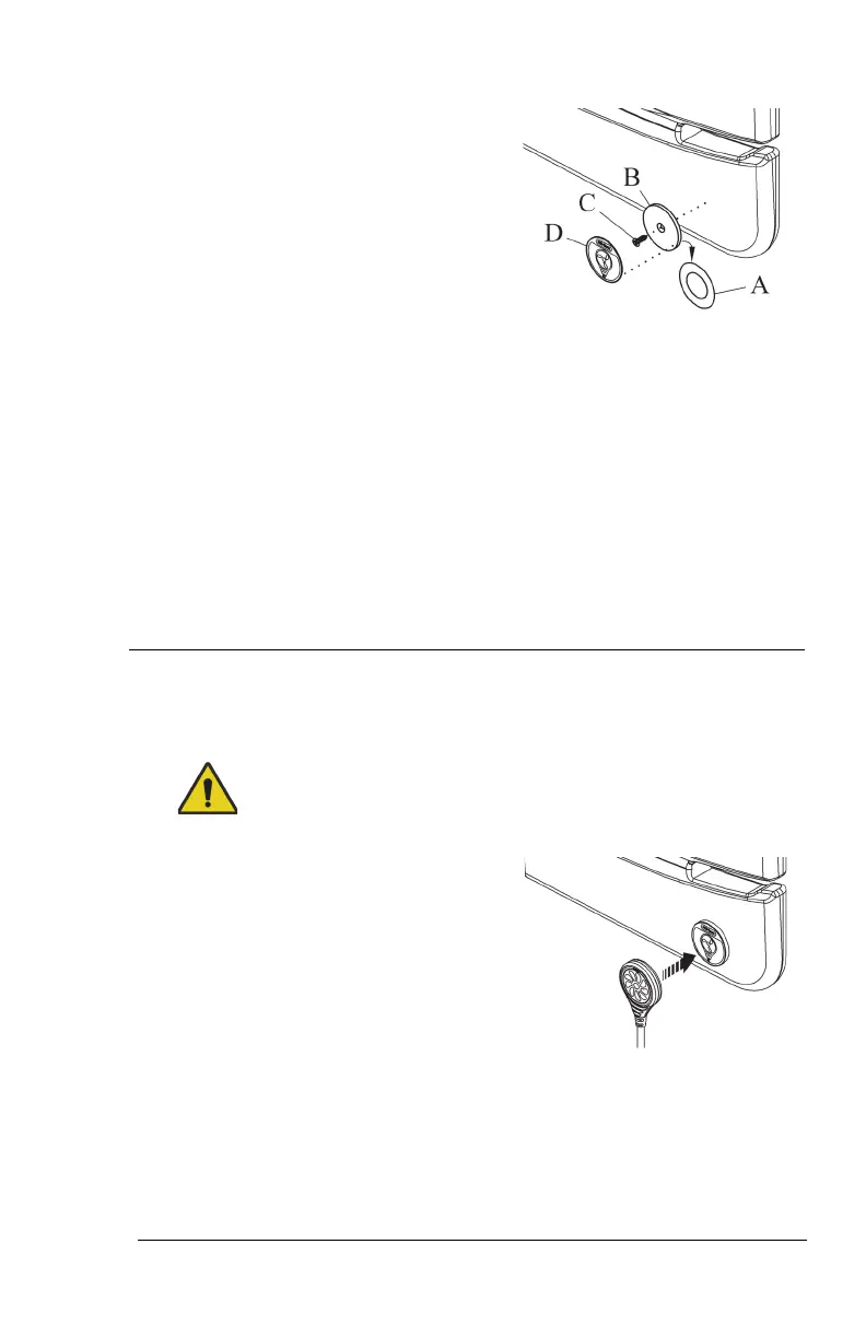 23. Make sure the label (D) is in the correct orientation, then install the