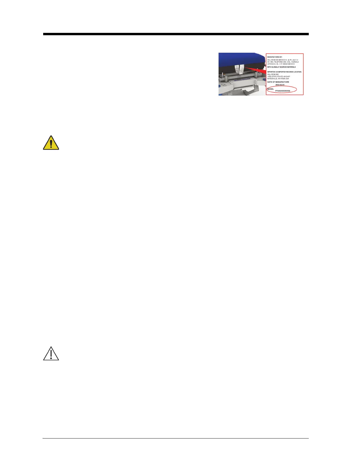 • Warning—Fluid spills on to the bed electronics could cause a hazard. If such a spill occurs,