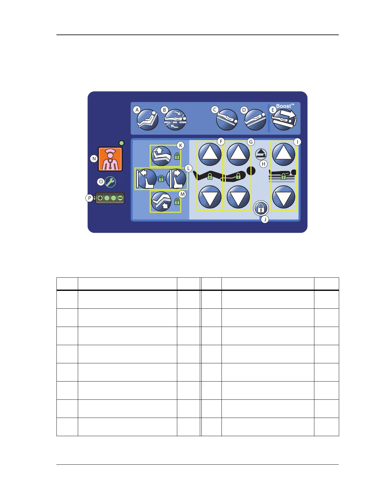B Bed flat control 26 J Lockout control—locks out bed