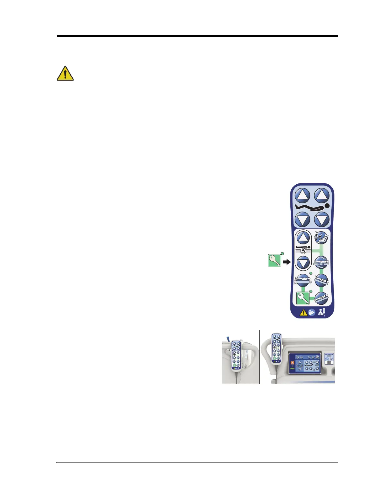 This section describes the pendant controls that are intended to be used only by the caregiver.