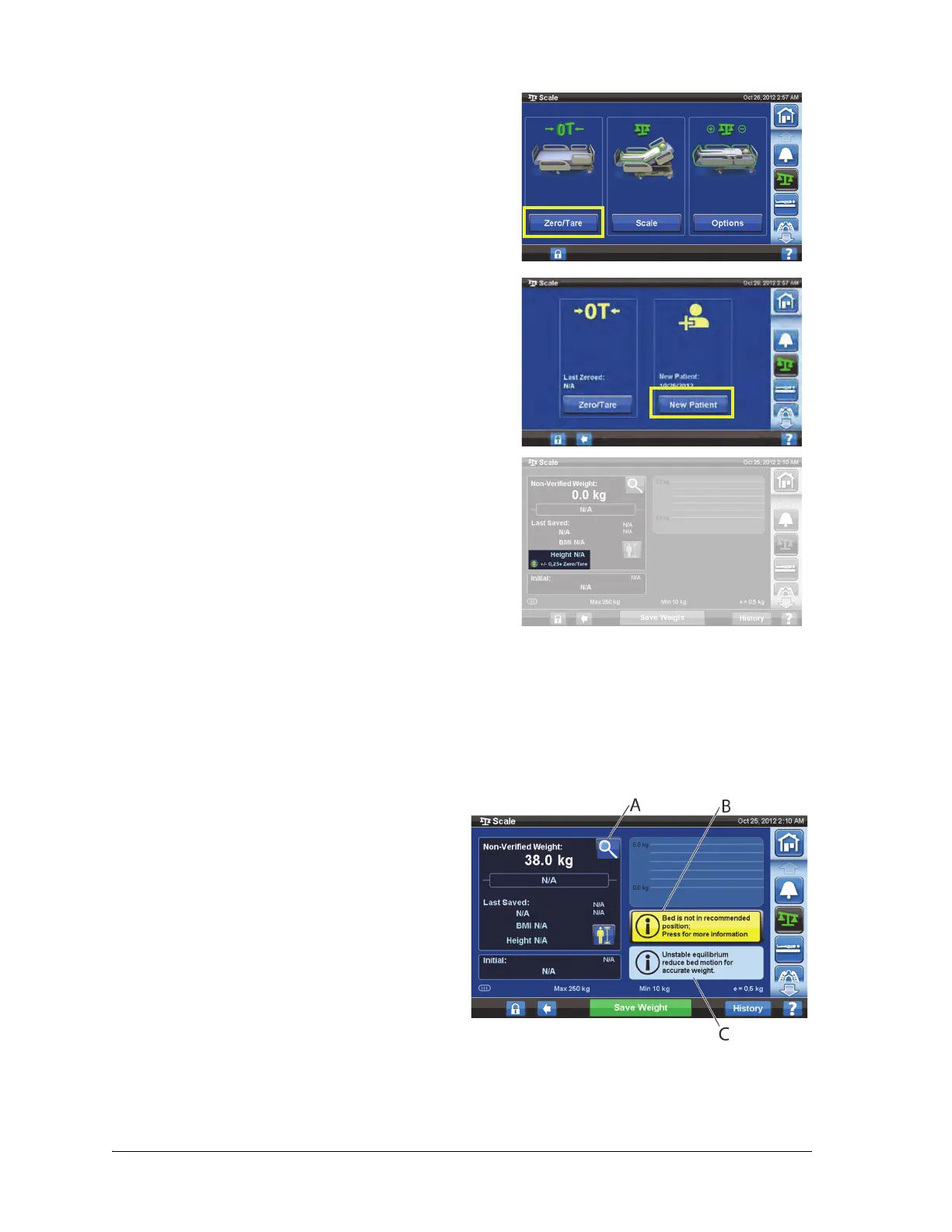 +/- 0,25e Zero/Tare will appear on the Scale screen. This indicates the bed has an acceptable zero/tare.