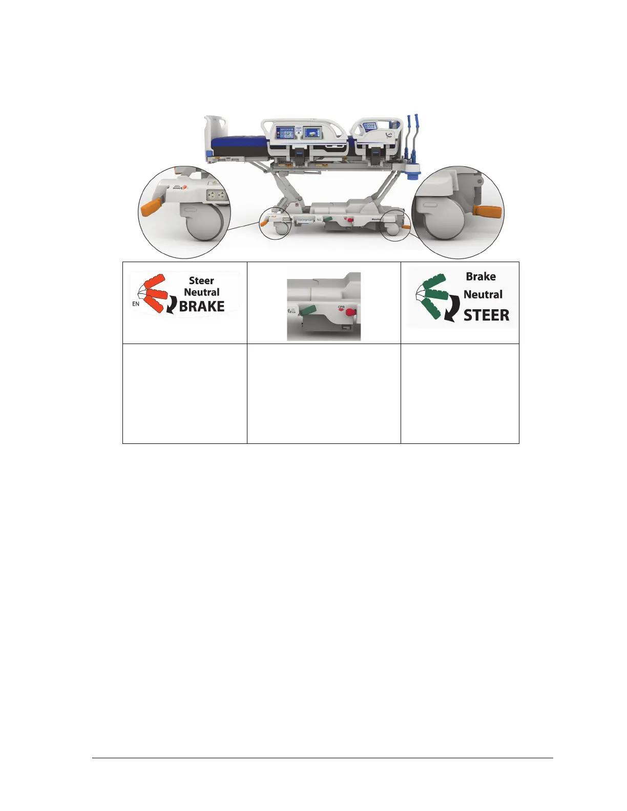 mode. All four casters on the bed are put into the neutral position. This allows the bed to pivot on the