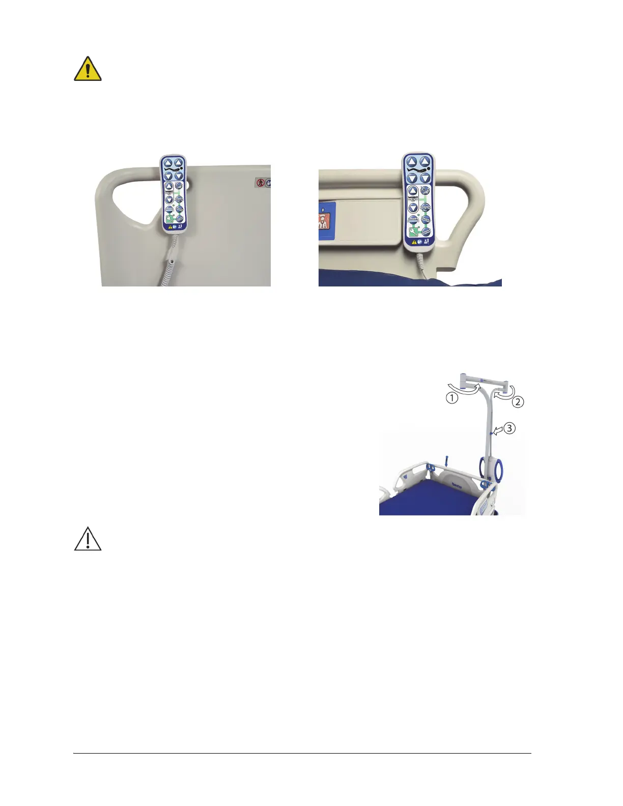 • Warning—If applicable, put the caregiver pendant on the patient side of the footboard or the