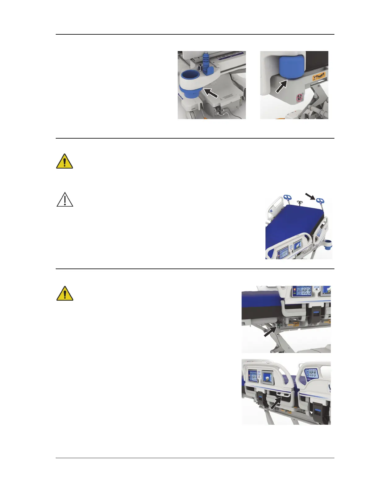 • Warning—Hanging a drainage bag on any part of the bed