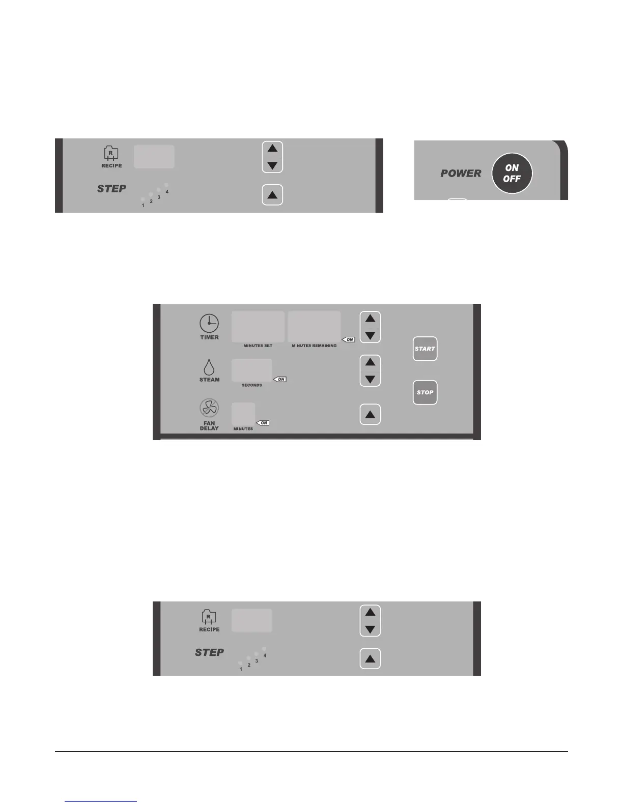 1. With the oven in the OFF mode, press and hold the UP arrow in the STEPS section. While pressing