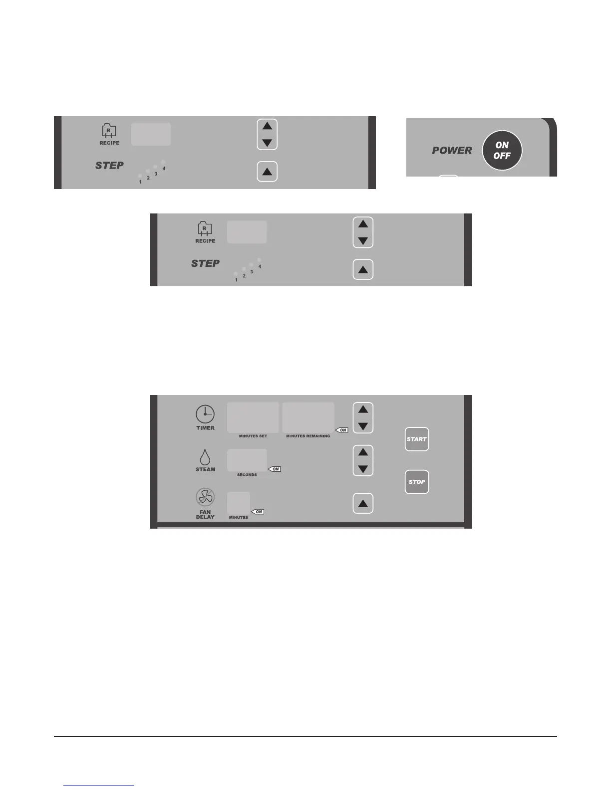 1. With the oven in the OFF mode, press and hold the UP arrow in the STEPS section. While pressing