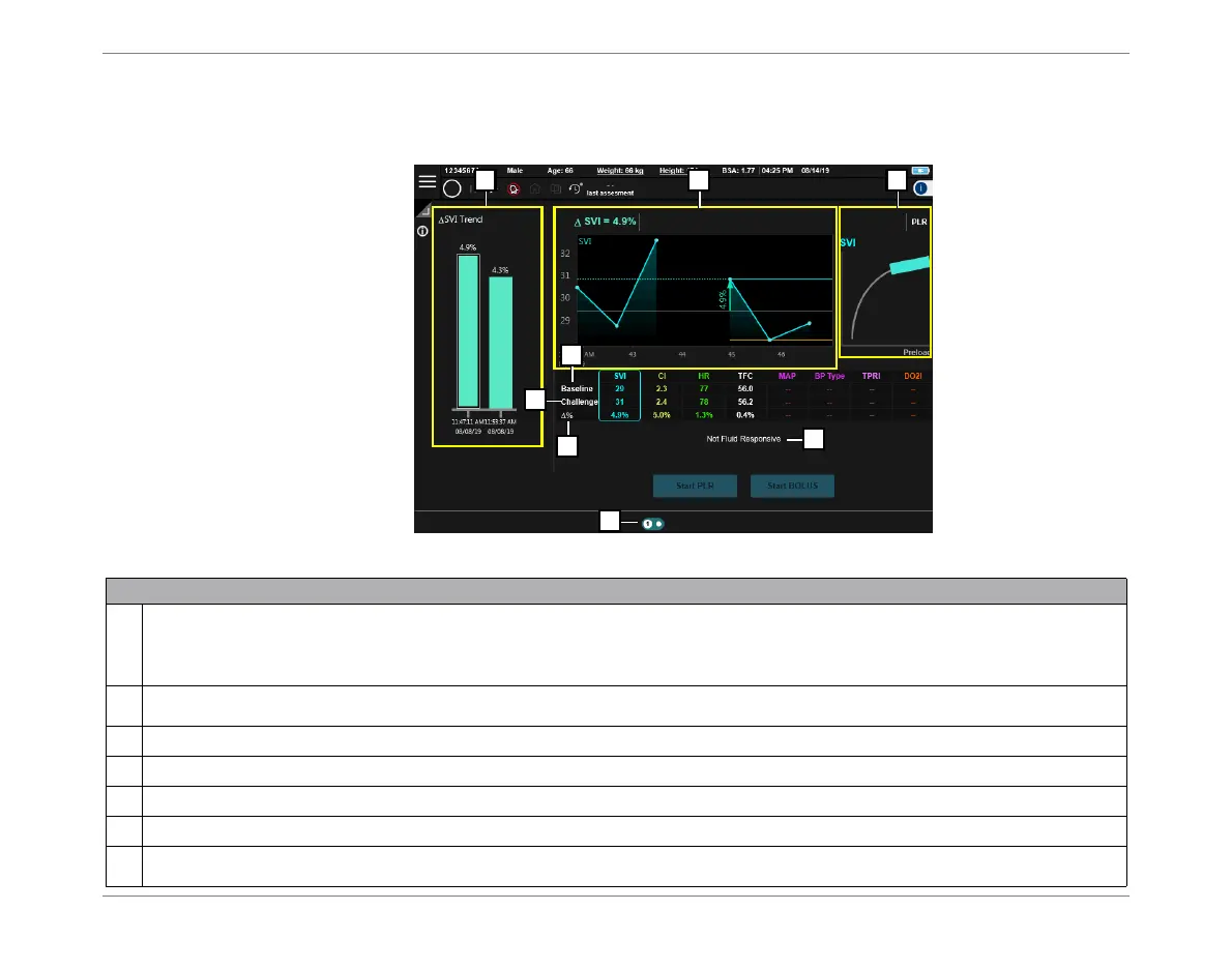 Displays the continuous results of the SVI during the PLR/Bolus Test; this is divided into the Baseline portion, and the Challenge portion.