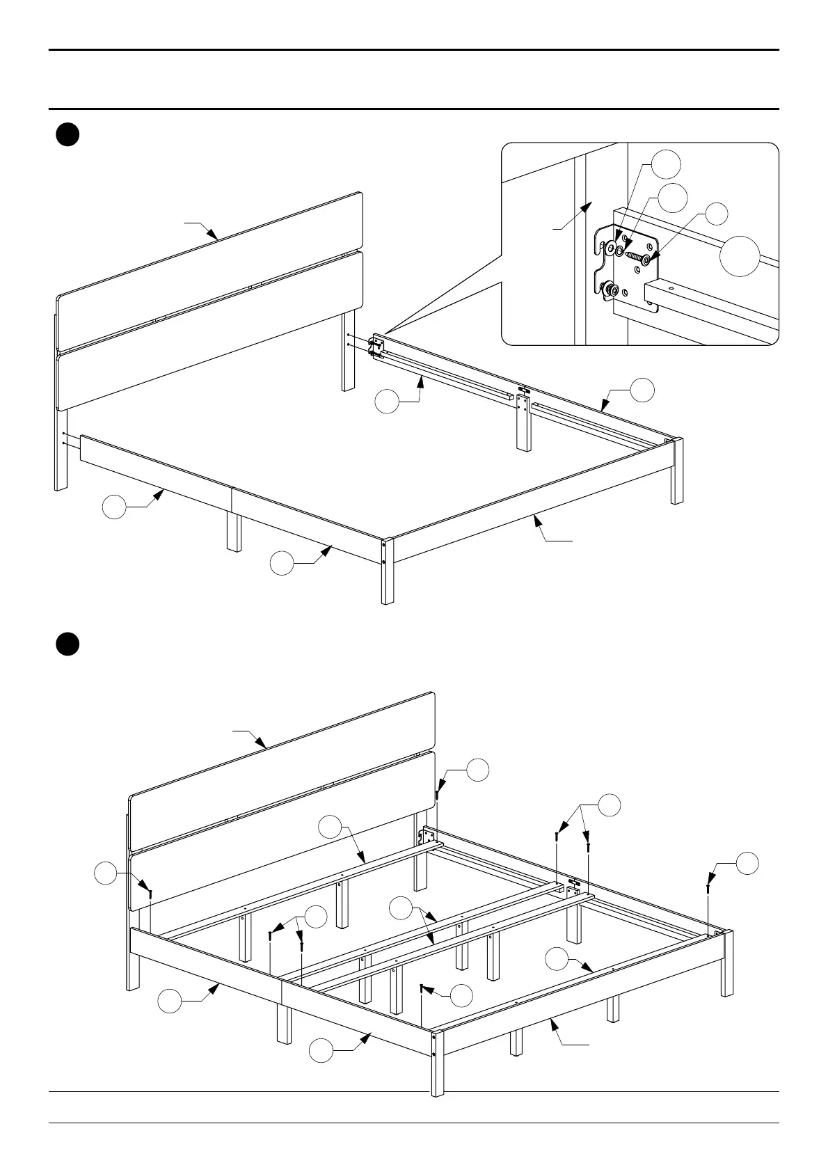 Bolt the Bed Slats (E) to the Side Rail (C & D).