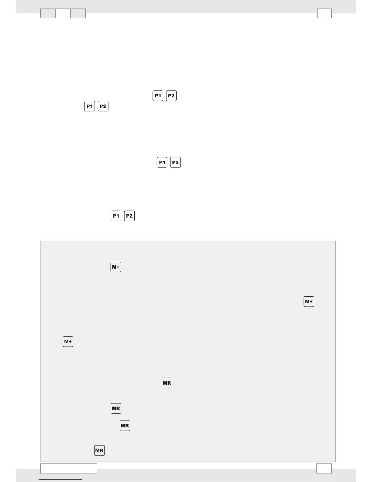 (P1 ou P2) pour sélectionner la mémoire PLU désirée.