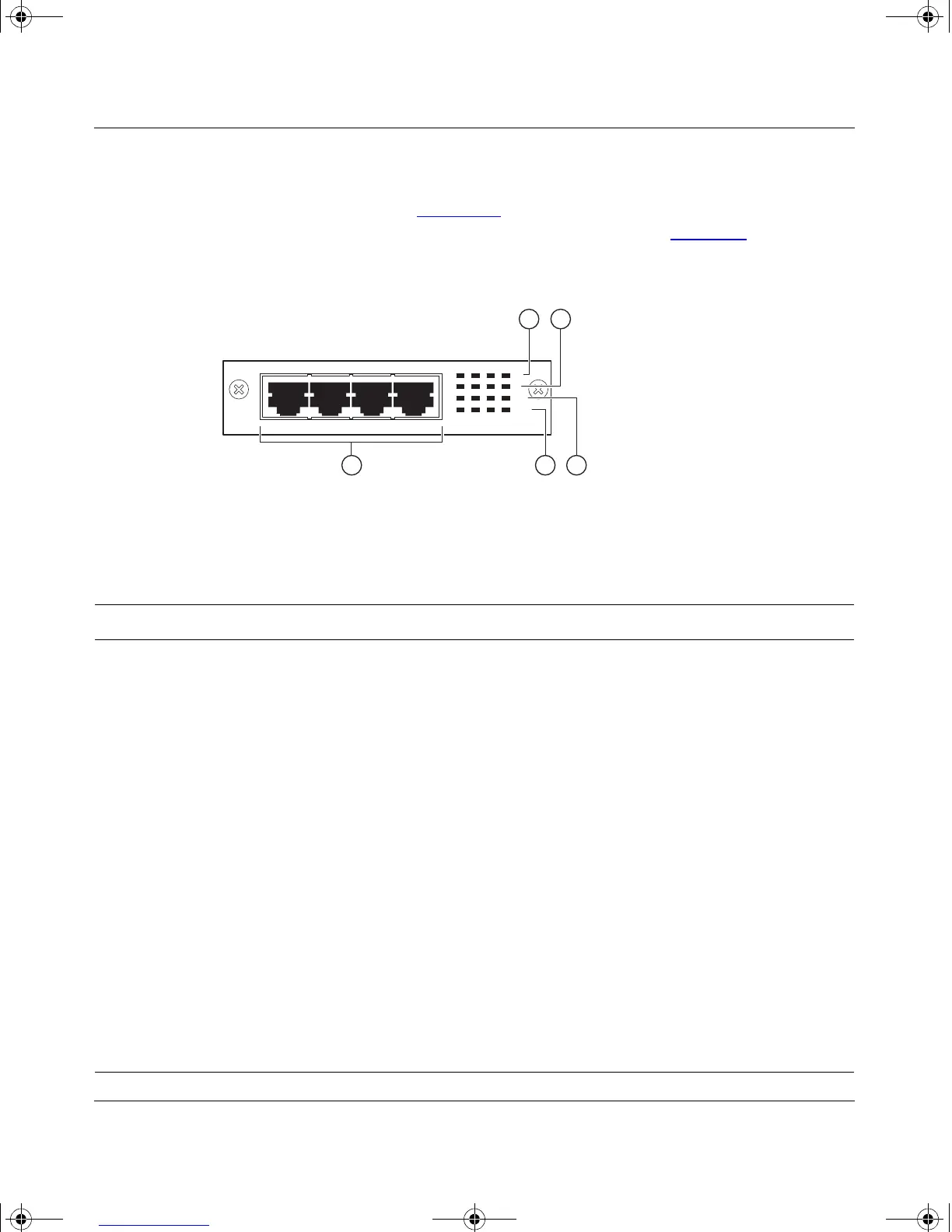5 10BASE-T/100BASE-TX RJ-45 (8-pin modular) port connectors.