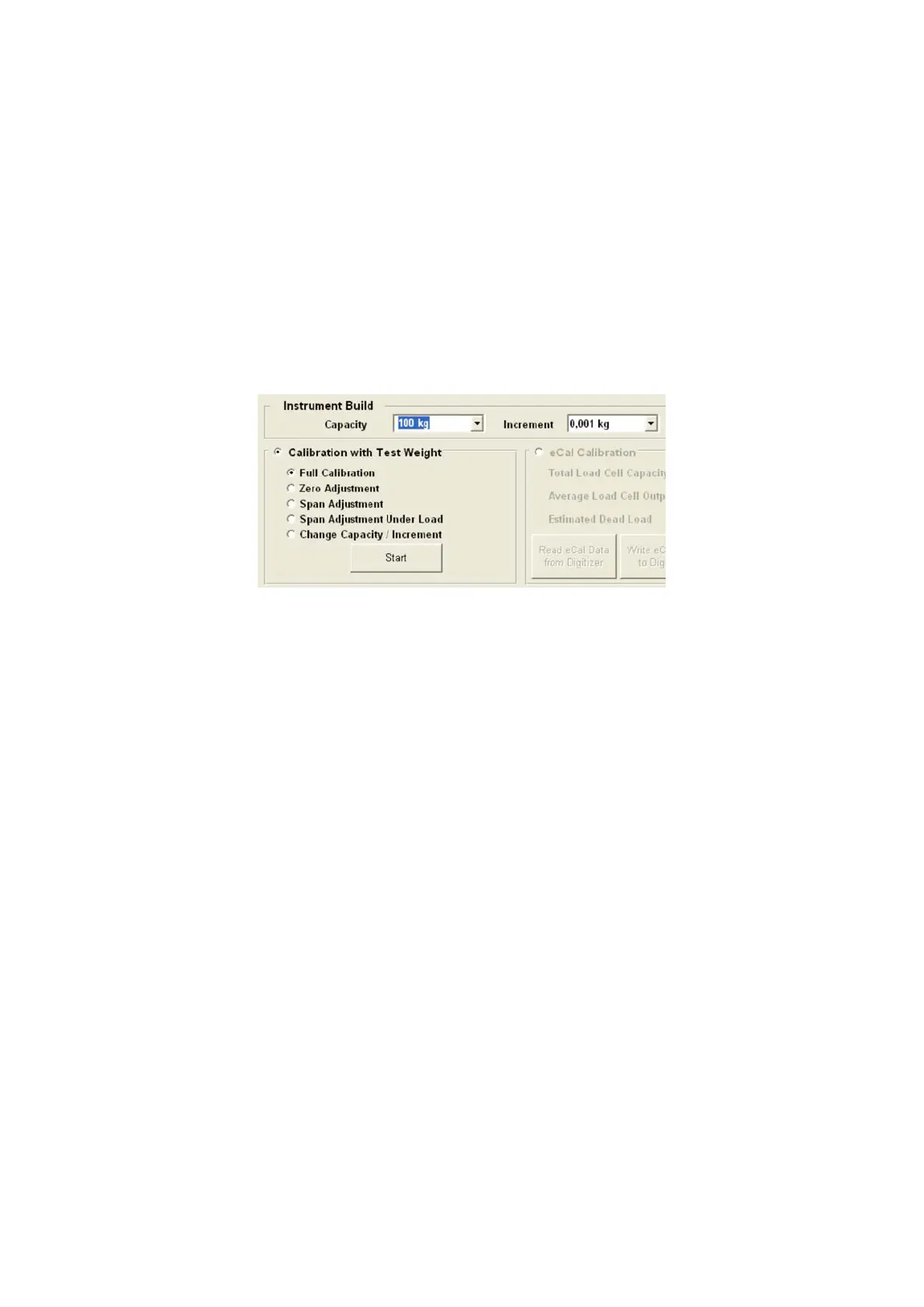 Select Full Calibration for performing scale calibration. Click the Start button. Unload the