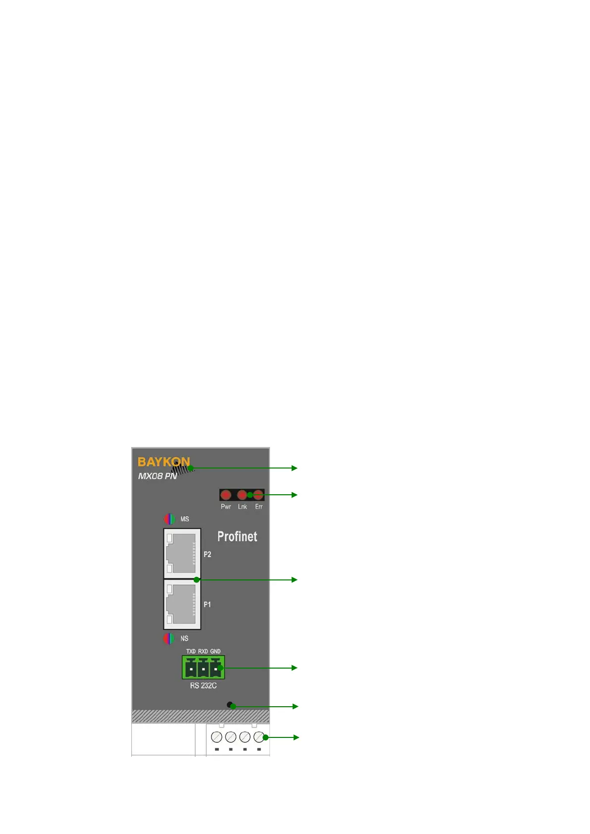 pcs Input / Output device to Profinet field bus. MX08 PN instrument communicates with