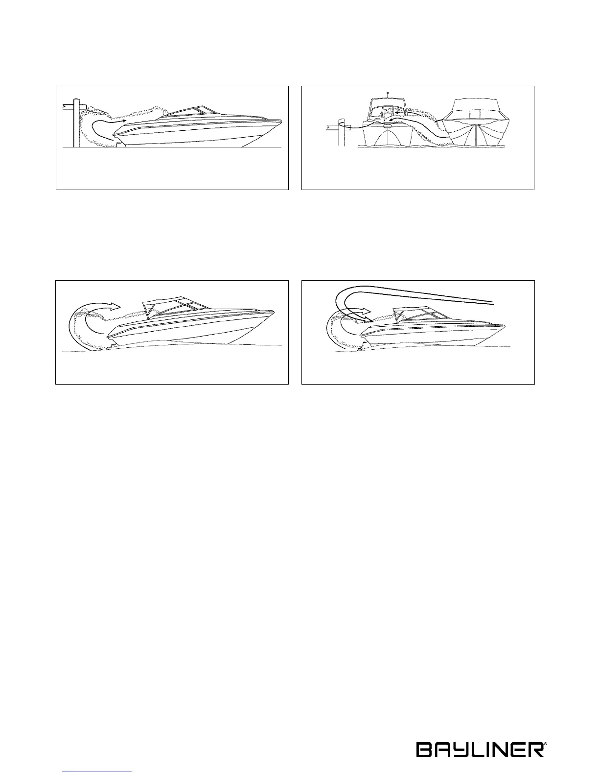 • Never sit on, or hang onto, the back deck or swim platform while the engine(s) is running OR engines are running.