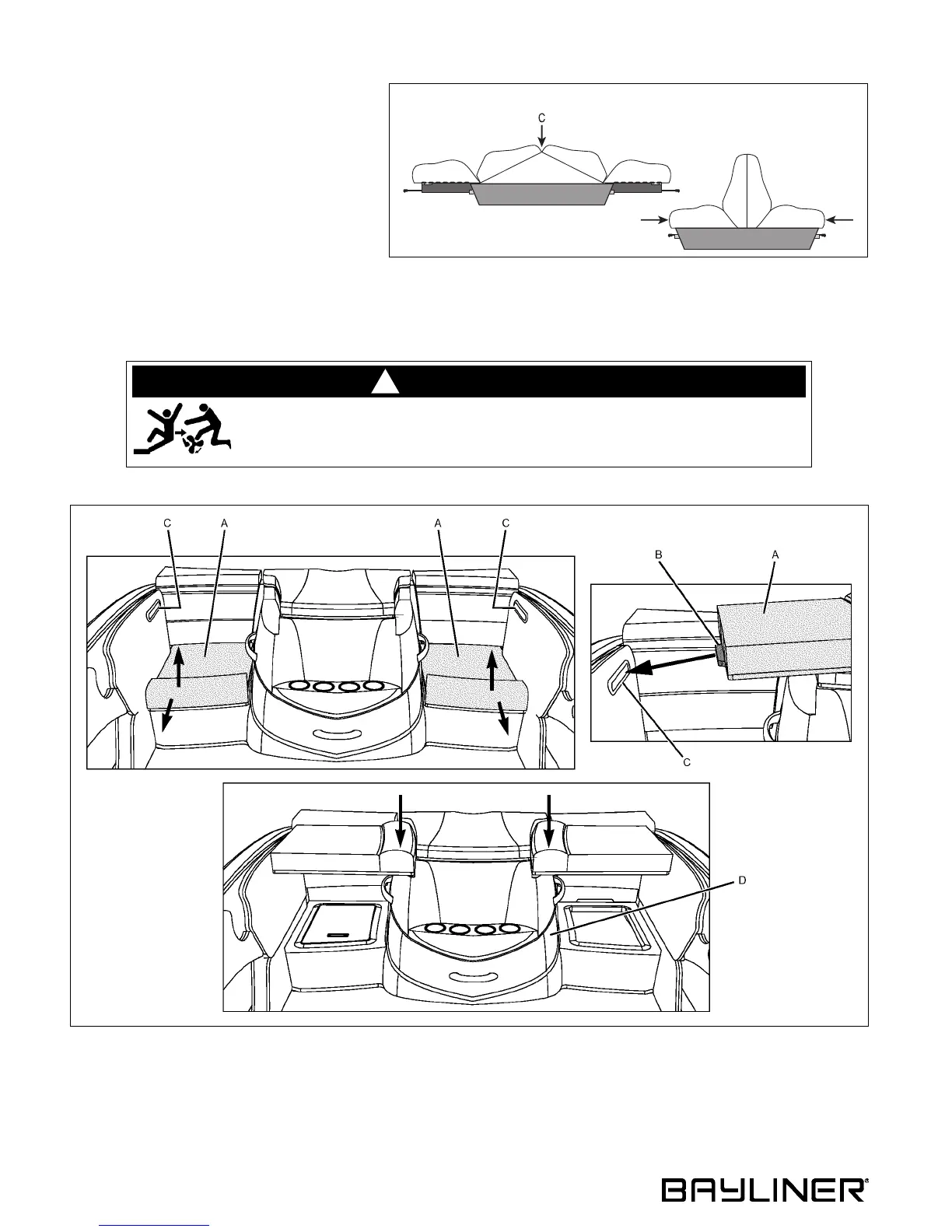 1. Lift the seat-backs at point (C) and push